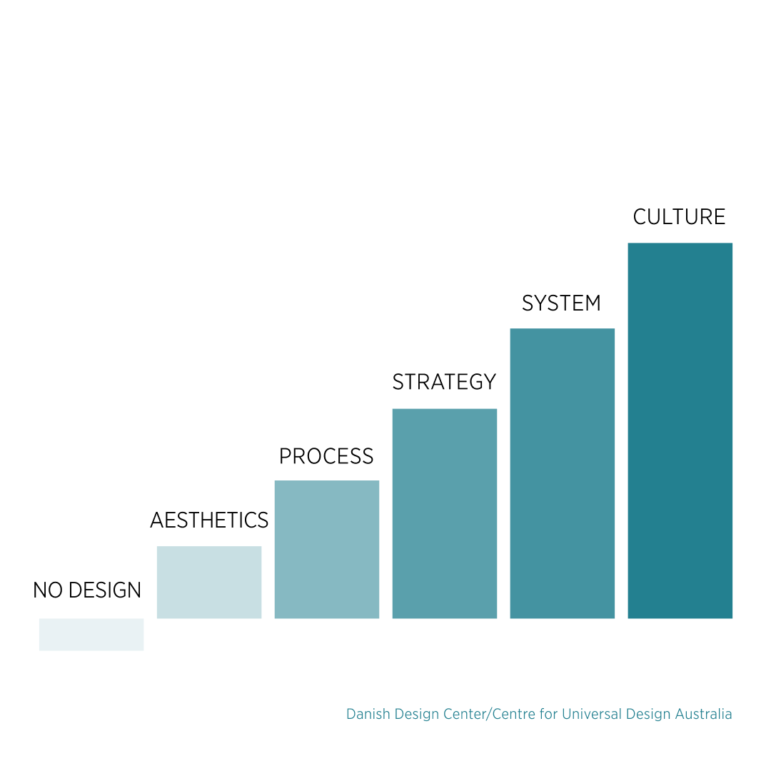 Design has many facets. All too often it is still interpreted as merely the aesthetics of objects, such as furniture, cars, lemon squeezers, or the buttons on a website. If something looks nice, then it is considered to be designed. However, this is only the lowest rung on the so-called “design ladder,” which describes the maturity of design in an organization.